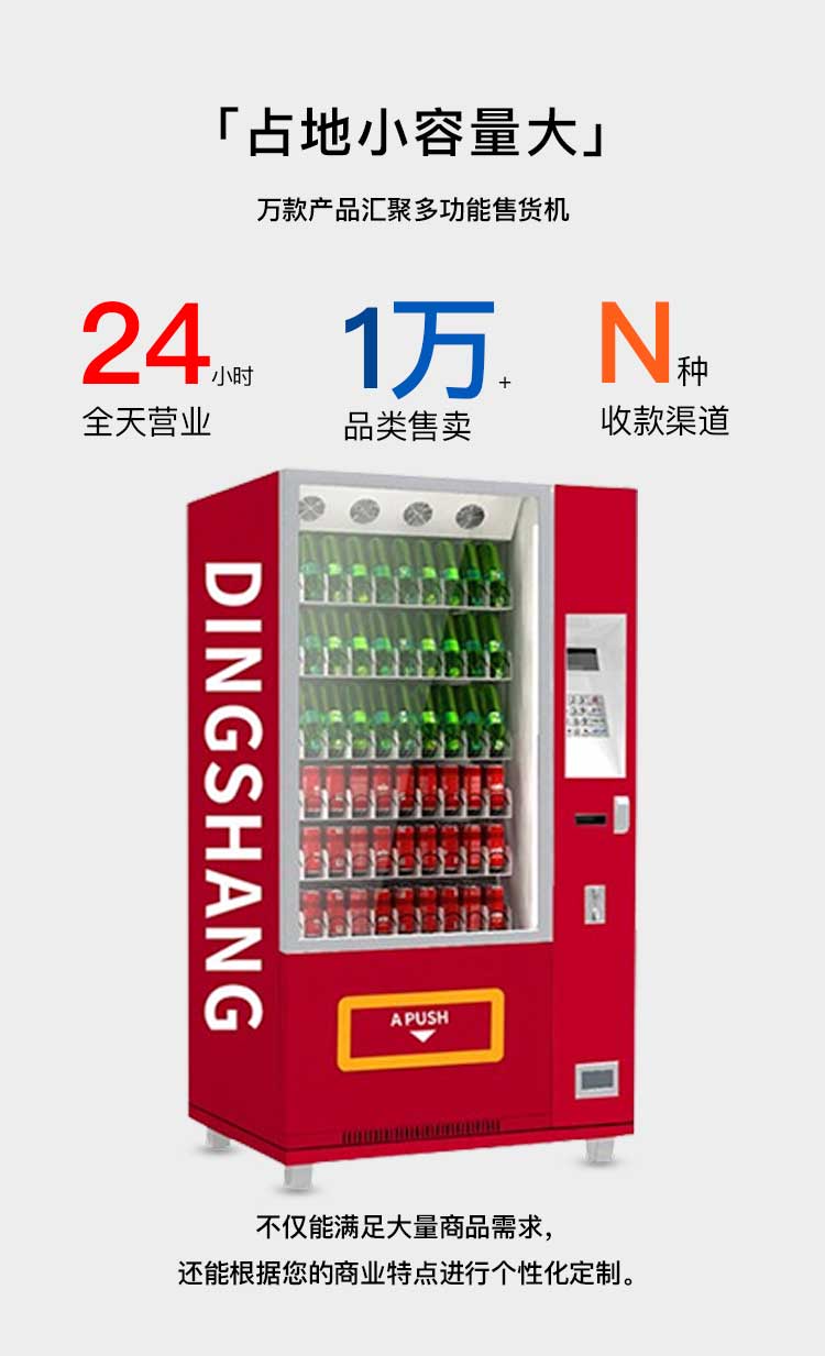 鼎商的可定制无人售卖机是商业创新的巅峰之作,为商家和消费者提供了全新的购物方式。其独特之处在于可灵活定制货道结构,商家可以根据不同商品的需求进行调整,实现个性化展示。这不仅能够更好地突显品牌形象,同时也使消费者享受到更个性、更贴心的购物体验。定制商业未来的理念体现在这款智能售卖机的每一个细节,为商家提供更大的经营空间,为消费者创造更富创意和舒适的购物环境。鼎商可定制无人售卖机,不仅是商业发展的助推器,更是引领商业未来的先锋。